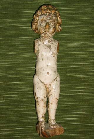 Encontrar en la excavación, escultura roble niño Jesús