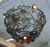 Lámpara de Dios antigua del siglo XVIII, plata martillada Juan Manuel Sanz (Salamanca 1719-1793) Marcado 59 / MTRO, seña de identidad de Salamanca, IVAN / SANZ de plato Obras de Manuel Sanz --- Museo Santa Maria de Mediavilla. Catedral de Ávila, Catedral Oerense oscuro. 90x43 cm Peso: 2.6Kg