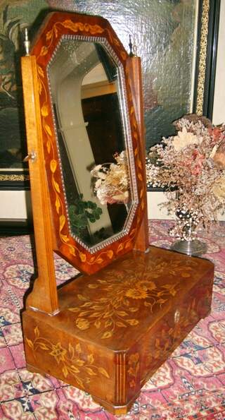Joyero con espejo caoba intarsia / fruta Holanda siglo 19a 70cm alto, 24cm de ancho 44cm de profundidad