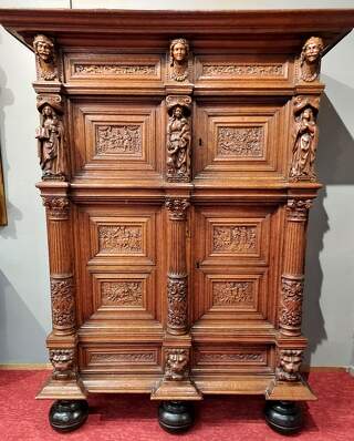 Home›Muebles antiguos›Armarios antiguos›Mueble renacentista de roble antiguo, principios del siglo XVII