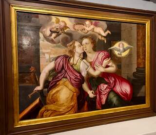 Pax et Justitia' Frans Floris de Vriendt (17 de abril de 1519 - 1 de octubre de 1570 +/- 1550) El tema principal del cuadro se remonta al Salmo 85, versículo 11 donde la justicia y la paz se abrazan. El tema de Pax et Justitia aparece varias veces en la pintura del sur de Holanda de la segunda mitad del siglo XVI. C. Van de Velde (p. 268, 270) menciona otras cuatro composiciones similares atribuidas a Frans Floris del Museo Pushkin (n.º inv. 1155) de Moscú.