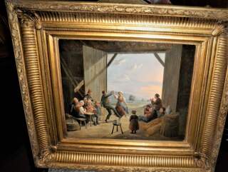 Óleo sobre panel de roble 'Fiesta en el pueblo' Firmado abajo a la derecha C. Coene