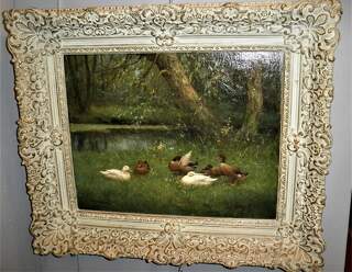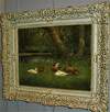 Aceite de "familia de pato" sobre madera contrachapada